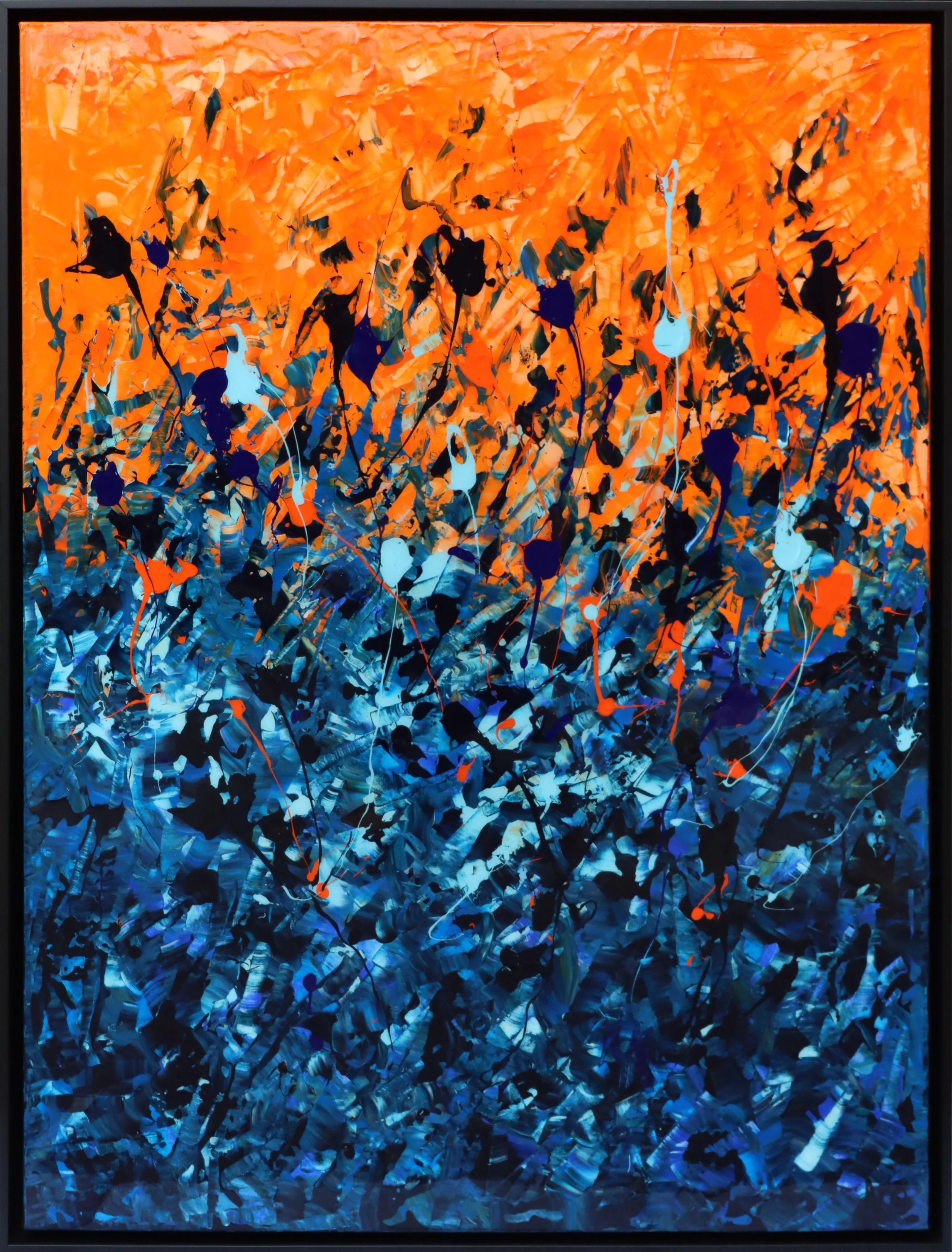 Collector’s Note: This dynamic painting by ARO, titled "Oser Exister" (2025), is a powerful celebration of courage and expression through abstract color fields. With its dramatic contrast between the invigorating orange and the deep, surging blue, the artwork embodies a bold emotional journey—a true invitation to “dare to exist.”