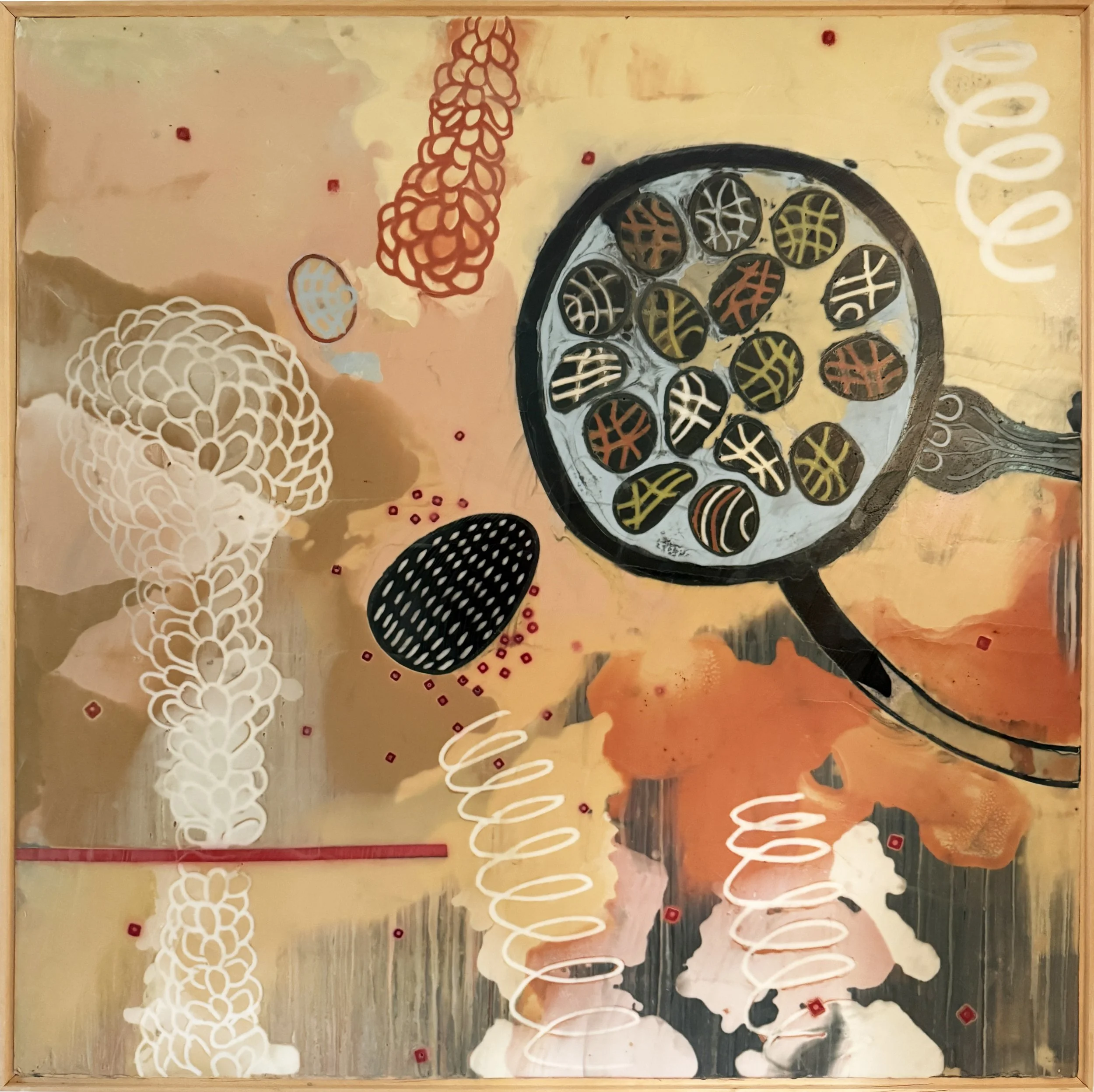 Sakis Mits is a Canadian artist known for his vibrant, large-scale encaustic paintings—works that capture a moment of youthful energy, bold exploration, and painterly experimentation. His practice flourished in the early 2000s when he was represented by the Moore Gallery in Toronto and earned critical acclaim for his luminous, organic compositions. In a 2000 Globe and Mail review, art critic Gary Michael Dault described Mits’ paintings as “…lush encaustics on board, arrangements of hotly coloured, amoeba-like shapes… embedded, suspended in the lens-like wax… The colour is opulent.”