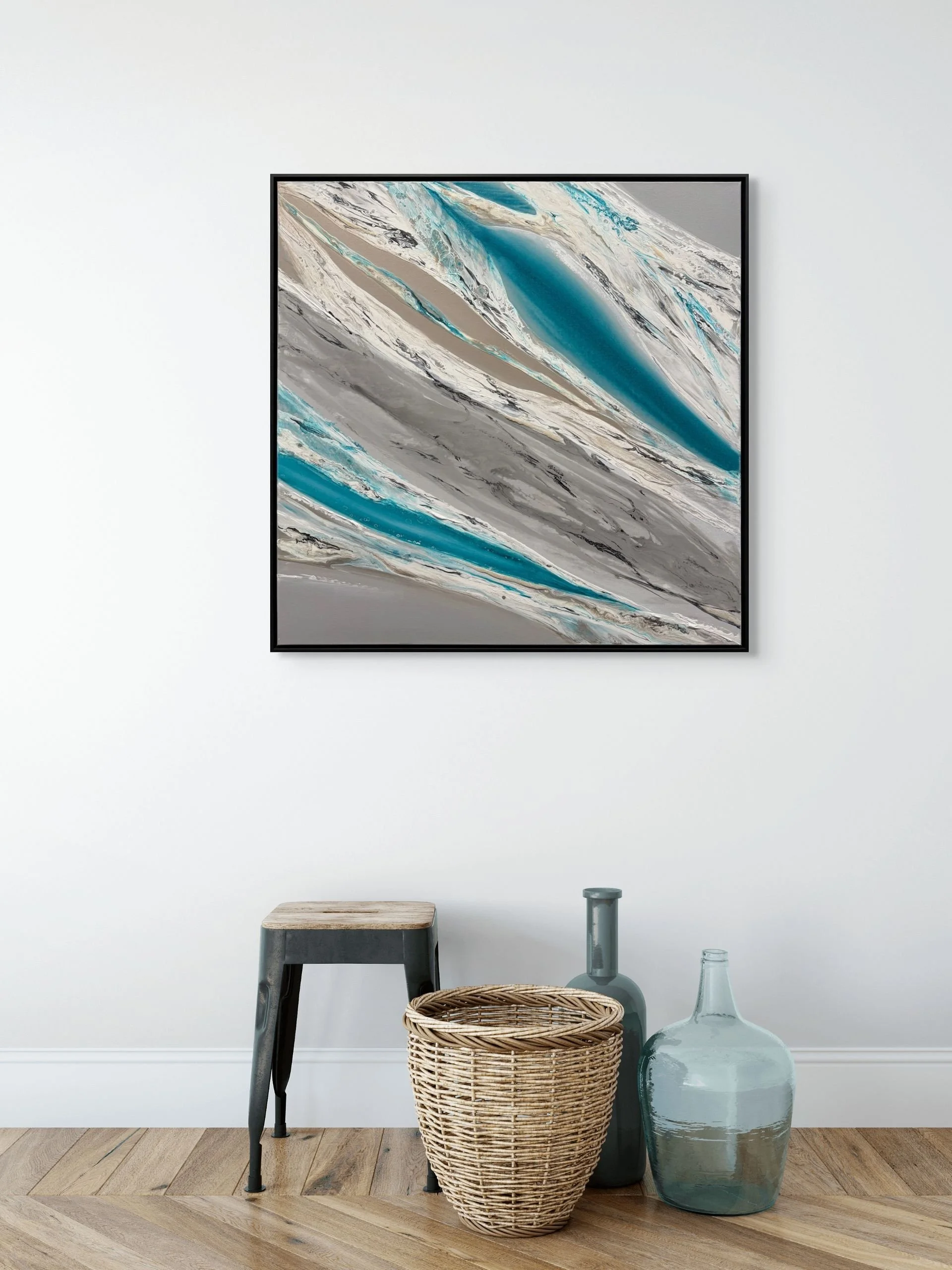 A self-taught artist, Bontempo began painting more than a decade ago as a therapeutic response to illness and personal loss. What started as an act of healing evolved into a full-time practice defined by authenticity and emotional resonance. Her signature use of blues, layered transparencies, and dynamic contrasts—between stillness and energy, control and surrender—give her paintings a visceral impact that appeals to collectors seeking work with both sophistication and soul.