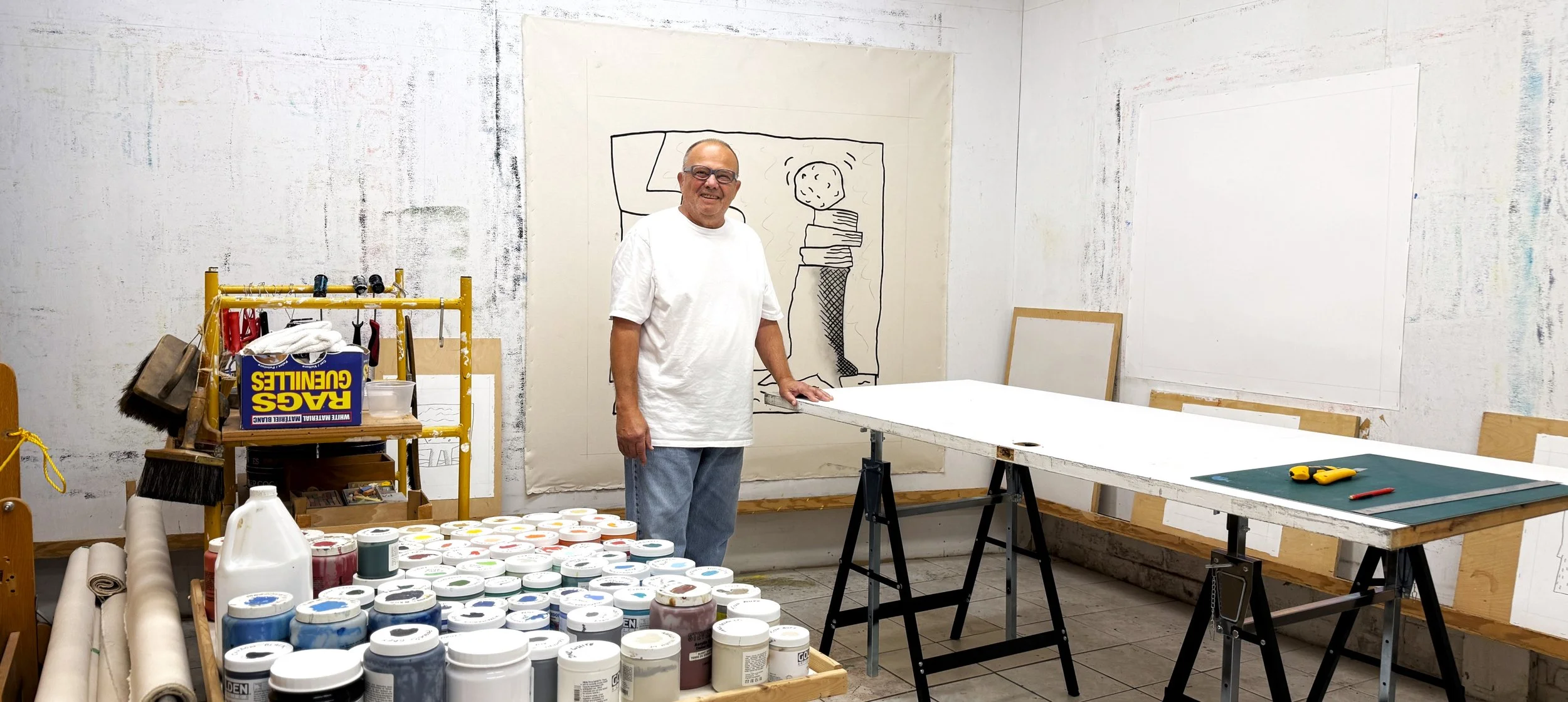 As we walked through his studio, Tony shared anecdotes that felt like urban myths—stories of artists, exhibitions, and moments that shaped Toronto’s cultural identity in the latter half of the 20th century. His artworks, often described as “abstract funnies” or “surreal cartoons,” mirror this storytelling spirit: playful on the surface, layered with meaning, and open to countless interpretations.