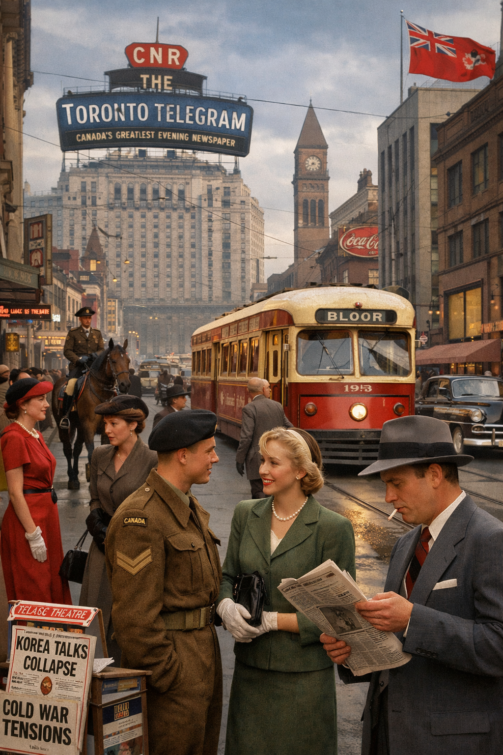 Between 1949 and 1954, Toronto experienced a postwar transformation. The economy was booming, manufacturing and construction were thriving, and consumer confidence was rising. The city broke ground on Canada’s first subway, a project that symbolized Toronto’s ambitions to be seen as a modern North American metropolis rather than a colonial outpost. At the same time, suburban growth was accelerating, forcing politicians and planners to confront the limits of the old city structure and leading to the creation of Metropolitan Toronto in 1953.