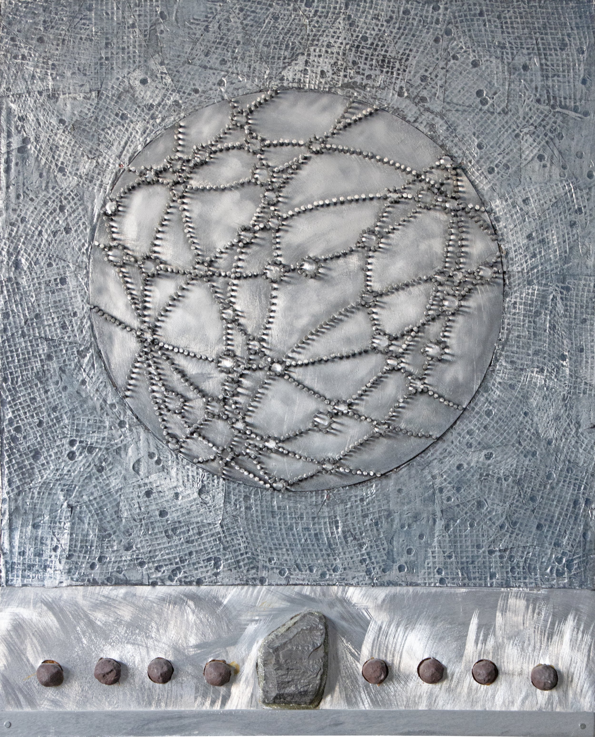 Description: David Partridge’s “naillies” are innovative relief sculptures created by hammering nails of varying lengths into plywood or other surfaces, often finished with polish, lacquer, paint, or tape to enhance texture and light reflection. Each piece transforms simple materials into dynamic, tactile fields that play with shadow and form, ranging from abstract landscapes to suggestive figures. This distinctive technique, unique to Partridge, bridges painting and sculpture, creating works that are visually striking, interactive, and unmistakably Canadian in their inventive approach.