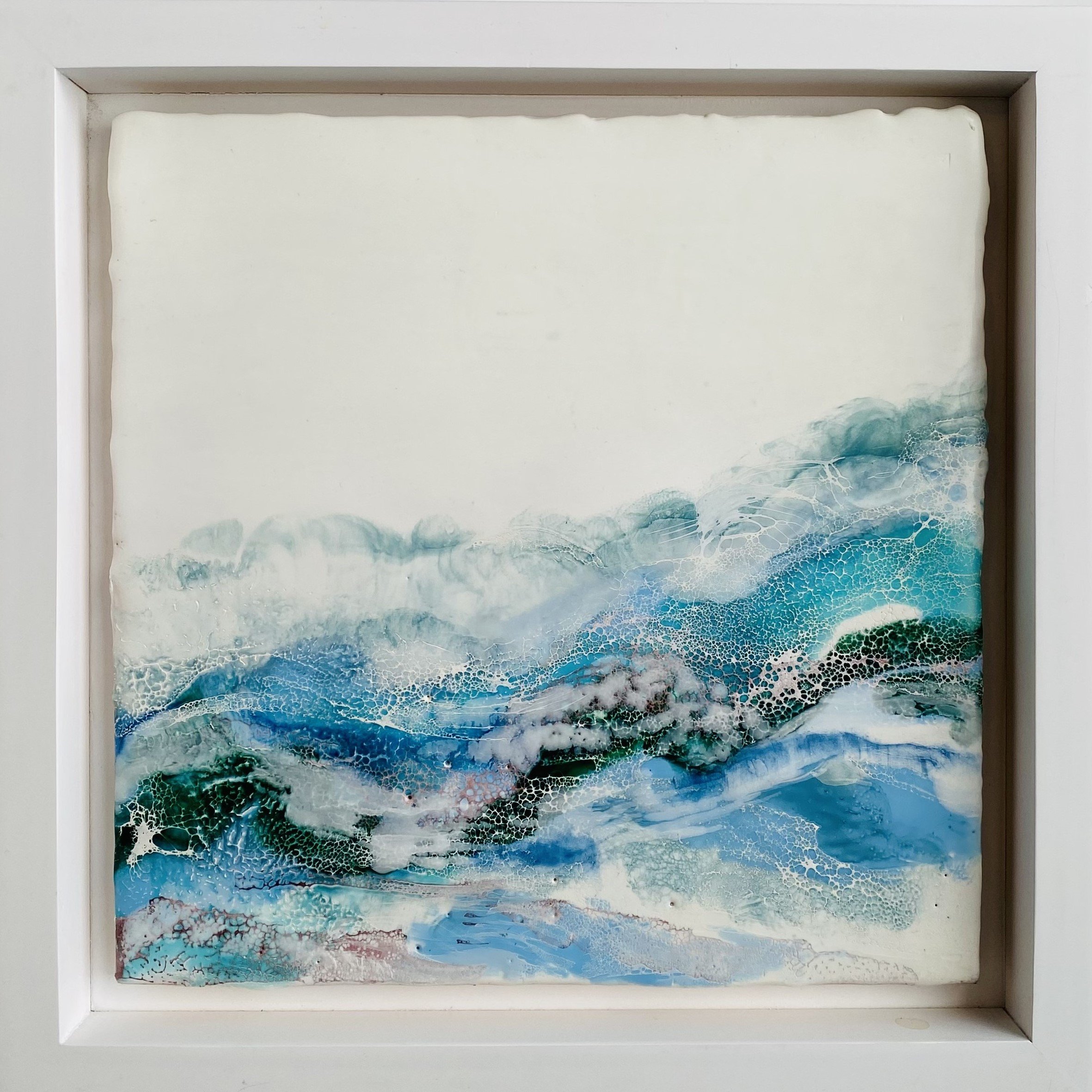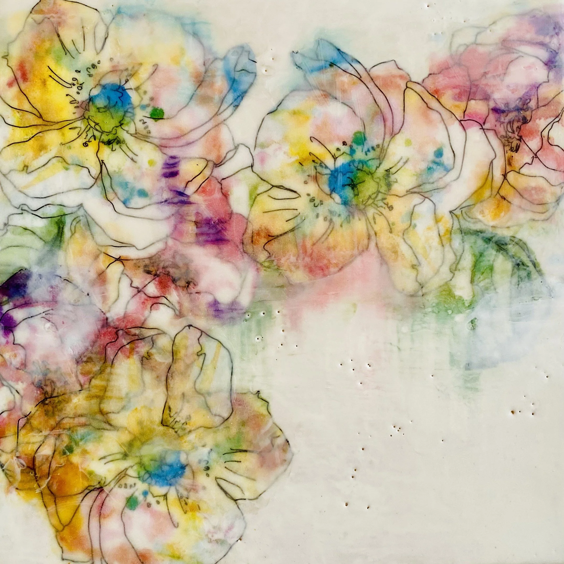 Cameron’s journey into encaustic painting emerged as a return to art after raising a family and navigating a period of profound personal change. Encouraged by those closest to her to embrace creativity as a path to healing, she discovered in encaustic—a medium composed of molten beeswax, pigment, and resin—a tactile, layered, and deeply responsive material that mirrors the complexities of life itself. For Cameron, each painting becomes an intuitive conversation: between hand and heat, intention and accident, silence and voice.